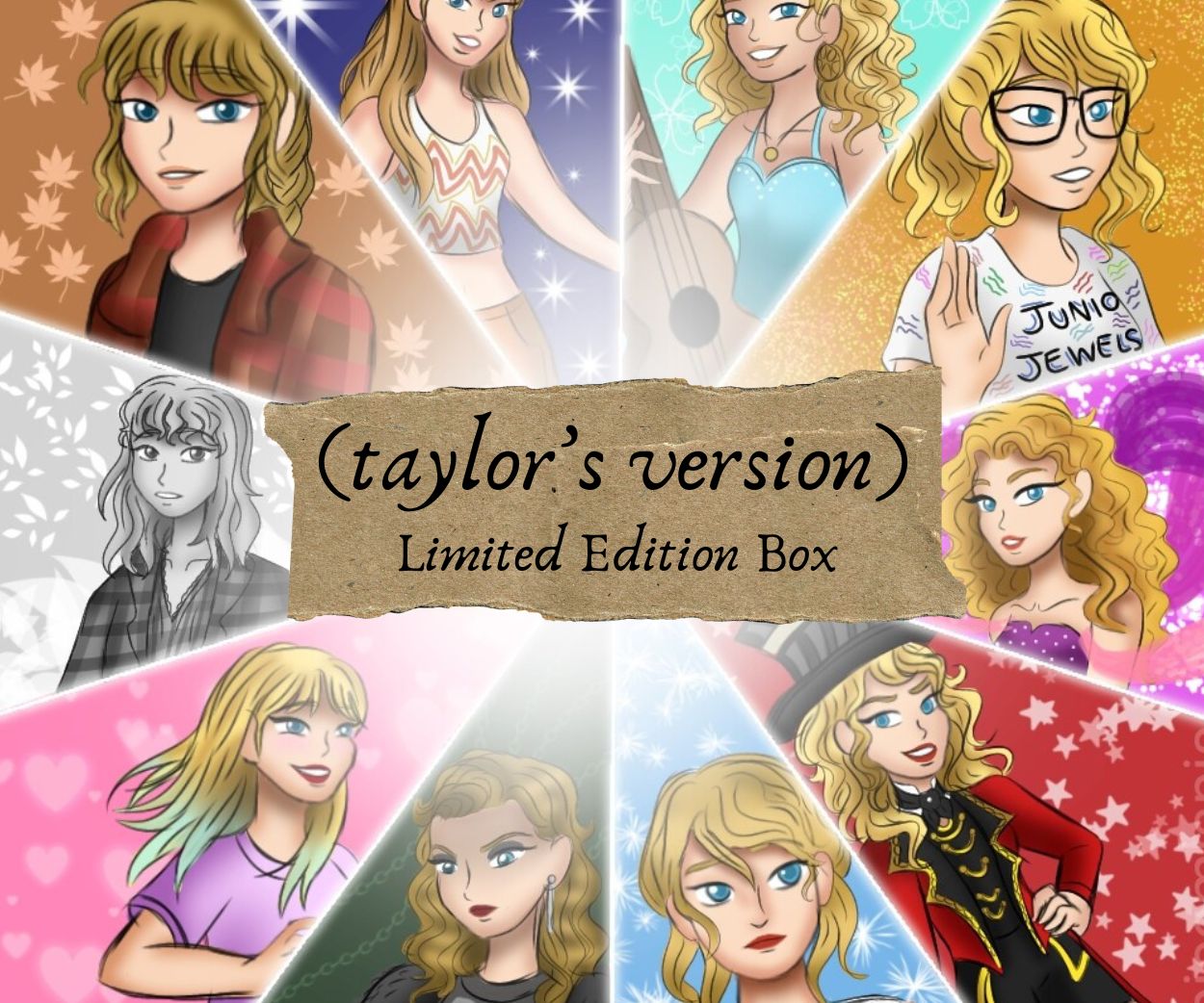 Our (Taylor’s Version) limited edition boxes are here! We realised very soon that each album needs its individual box but for now, we’ve tried to fit some from everything in a package. Above Era’s art is by @_riarenne